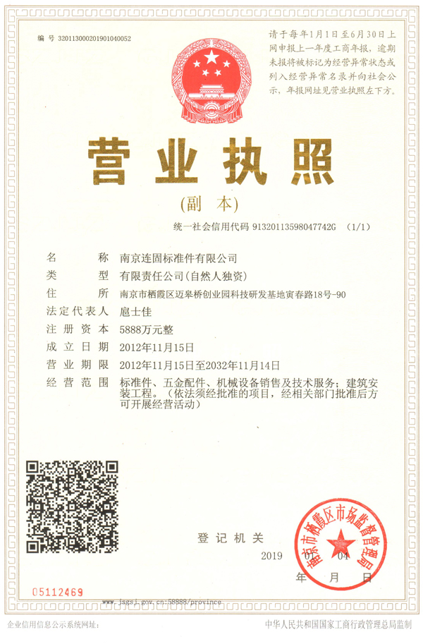 南京連固標(biāo)準(zhǔn)件有限公司,位于南京市棲霞區(qū)靖安鎮(zhèn)長(zhǎng)江工業(yè)園,國(guó)家大型企業(yè)之一,真正的廠(chǎng)家直銷(xiāo),價(jià)格實(shí)惠,現(xiàn)貨供應(yīng),庫(kù)存量較大,我公司是中國(guó)機(jī)械通用零部件協(xié)會(huì)會(huì)員,我公司長(zhǎng)期與國(guó)內(nèi)外大型企業(yè),重點(diǎn)工程配套。"連固"品牌在國(guó)內(nèi)外市場(chǎng)享有良好的聲譽(yù),為了適應(yīng)市場(chǎng)經(jīng)營(yíng)和自身發(fā)展的需要,我公司專(zhuān)業(yè)生產(chǎn).銷(xiāo)售和批發(fā)碳鋼 .不銹鋼 .合金鋼 .銅.高強(qiáng)度標(biāo)準(zhǔn)件,年生產(chǎn)能力達(dá)8000多噸。碳鋼等級(jí)有:4.8級(jí),6.8級(jí),8.8級(jí),10.9級(jí),12.9級(jí)。不銹鋼材質(zhì)有201. 202. 304. 316. 316L.904.904L。主要應(yīng)用于機(jī)械設(shè)備,汽車(chē)制造. 鐵路.高速鐵路.建筑鋼結(jié)構(gòu)、船舶、貨架,橋梁、道路,風(fēng)力發(fā)電、石油管道等領(lǐng)域。產(chǎn)品質(zhì)量和信譽(yù)得到客戶(hù)的一致好評(píng)。我公司經(jīng)過(guò)十多年來(lái)的不斷努力形成了完整的工藝流程,建立了從...